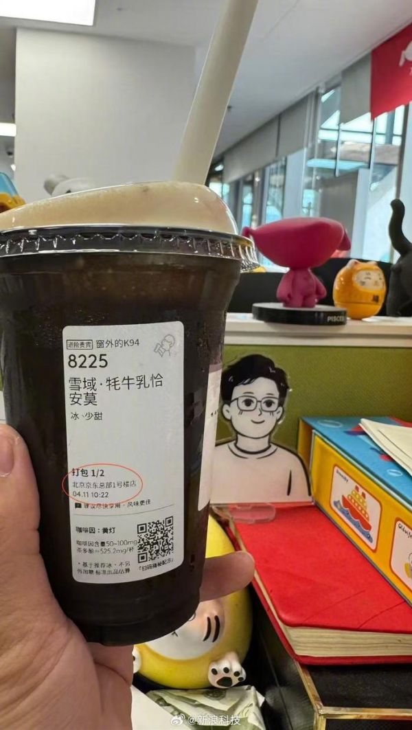有网友称,今日京东总部的喜茶门店正常营业,并未关闭。(新浪科技)