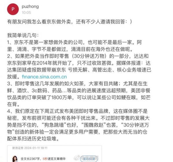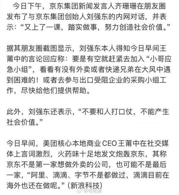 美团高管发文炮轰京东,刘强东回应:不打口水仗,产生不了社会价值…