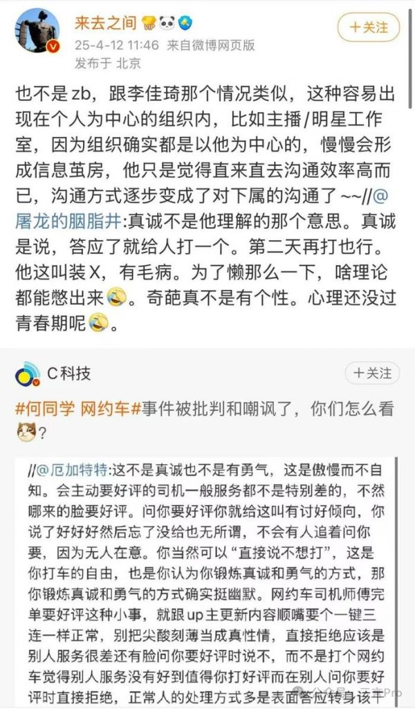 微博CEO王高飞也发表评论:也不是zb,跟李佳琦那个情况类似,这种容易出现在个人为中心的组织内,比如主播/明星工作室,因为组织确实都是以他为中心的,慢慢会形成信息茧房,他只是觉得直来直去沟通效率高而已,沟通方式逐步变成了对下属的沟通了。