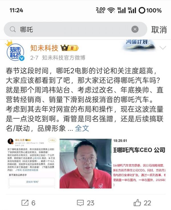 今年开年后,哪吒汽车其实是有一招或许能起死回生的妙招的,关键还惠而不费,那就是强蹭哪吒2电影的流量。发点短视频、买点推流、新媒体运营+剪辑的人力成本,这些加一块才多少钱呐,只要弄好了,Q1销量也不至于487辆。