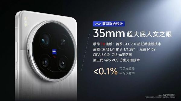 35mm主摄:1/1.28英寸索尼LYT-818,蔡司T*镀膜,GLC 2.0超低反镀膜;