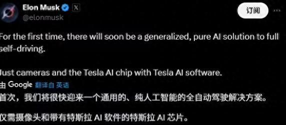 马斯克:特斯拉将推通用型纯AI全自动驾驶解决方案