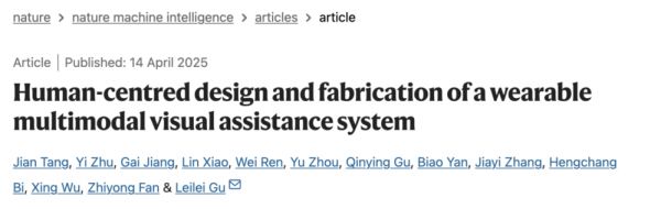 相关研究论文以“Human-centred design and fabrication of a wearable multimodal visual assistance system”为题,已发表在国际权威科学期刊 Nature Machine Intelligence 上。