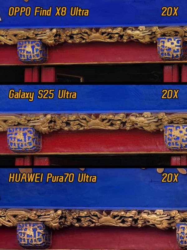 除了手感外,OPPO Find X8 Ultra的影像能力也有提升,加了超晶态蓝玻璃及丹霞原彩镜头,在复杂光源环境下有更强的色彩还原能力。有了丹霞原彩镜头的加入,OPPO Find X8 Ultra也升级为后置五摄系统,这套系统覆盖了15mm-300mm的黄金焦段,特别是双潜望长焦的组合,在3-10x之间都有很强的画质表现,哪怕是对比演唱会神器三星也不输,超高倍率下照片画质噪点比三星还强。