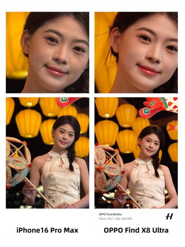 人像的升级更是史诗级,全新的LUMO凝光影像便是为人像拍摄而生,再加上丹霞原彩镜头,人像拍摄不仅虚化更自然,还带来真正的发丝级抠像,不看水印的话还以为是相机拍的。更重要的是,OPPO Find X8 Ultra拍出来的人像照片具备独特的“气血感”,肤色红润有光泽,对比iPhone优势明显。美颜也不是传统美颜死白的肤色表现,在逆光和夜景人像下优势还更明显,不用怕“顶光黑脸”的情况。