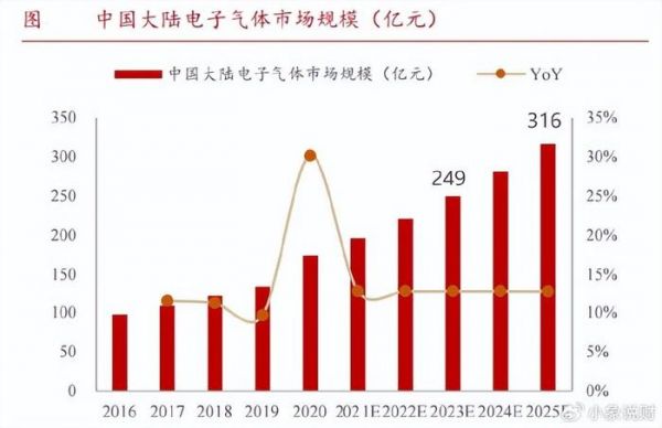 受益于中芯国际、华虹半导体等公司扩产,和半导体行业设备稼动率的提升,预计2023-2025年,国内电子特气市场规模将从249亿增长至316亿,还有不小的成长空间。