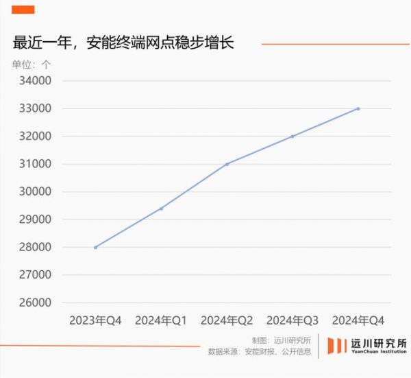 2024年,安能的网点数来到33000家,全国乡镇覆盖率达到99.3%,即便是在珠峰大本营也能实现“送货上门”[1],堪比快递市场的邮政。
