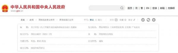 国家互联网信息办公室、工业和信息化部、公安部、国家广播电视总局就已经制定发布《人工智能生成合成内容标识办法》将于今年9月1日起施行。新规要求AI生成的包括文本、图片等内容,无论是展示还是下载导出等,都需要添加显著的提示标识,相当于给AI内容打水印,方便用户甄别。