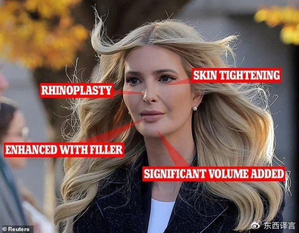 但整形医生却认为,伊万卡所接受过的“调整”包括,隆鼻、面部填充与轮廓调整、眼部放大和注射肉毒杆菌、牙齿贴面、隆胸以及颈部拉皮。此外她那平坦的腹部也被认为是由仪器打造的,当然这个在名媛圈中早就是常态了,伊万卡的好友金·卡戴珊就曾展示过,她称这既能消除脂肪又能让皮肤紧致。