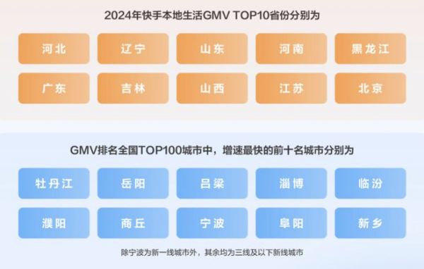 在快手本地生活的城市增速排名中,GMV增长最快的10个城市里,9个都是新线城市。