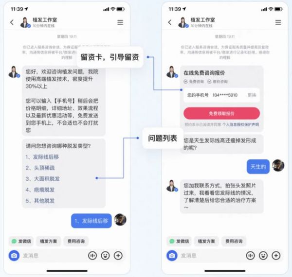 比如,某植发工作室提前设置了“脱发类型”选择题,了解客户情况的同时,还能从中筛选出高意向客户。