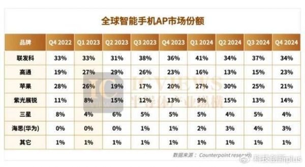 2024Q2全球智能手机AP市场:展锐出货量大涨42%,海思拿下2.7%份额!