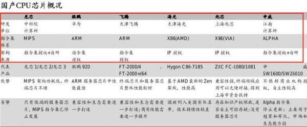 其中,龙芯中科在CPU指令集方面独树一帜,寒武纪在AI芯片上起步早、技术积累深厚。