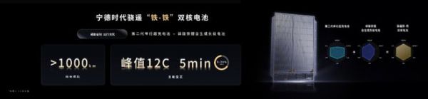 此外,宁德时代也展示了“铁-铁”的双核方案,主能量区搭载最新发布的第二代神行超充电池,增程能量区选择高比能的磷酸铁锂自生成负极电池,这样的搭配能让消费者享受到峰值12C的充电倍率,又能获得超1000公里的纯电续航,兼顾了日常通勤的经济性和长途出行的安全感。