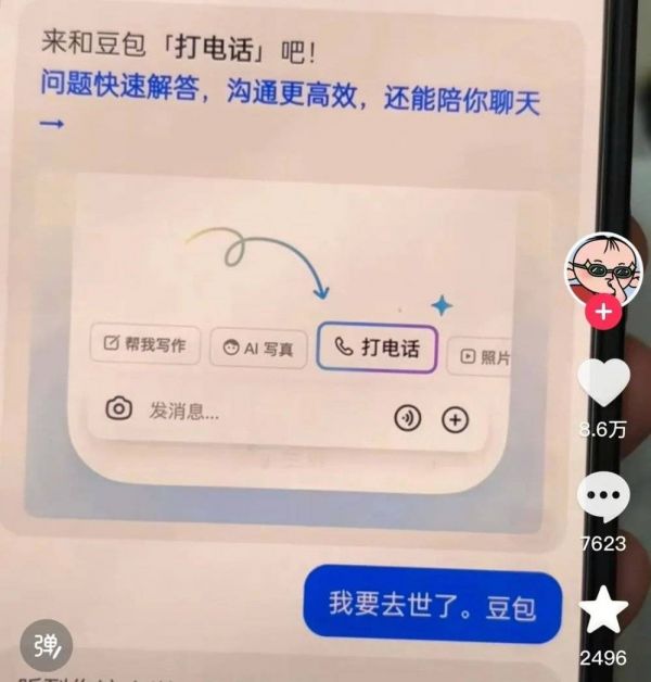 你好,有的。上周一位网友晒出一张截图,是自己身患重病的父亲在去世前夕和与豆包的对话,第一句是“我要去世了,豆包”。