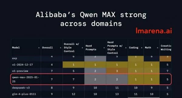 具体来看,Qwen2.5-Max在数学和编程等单项能力上排名第一,在硬提示(Hard prompts)方面排名第二。
