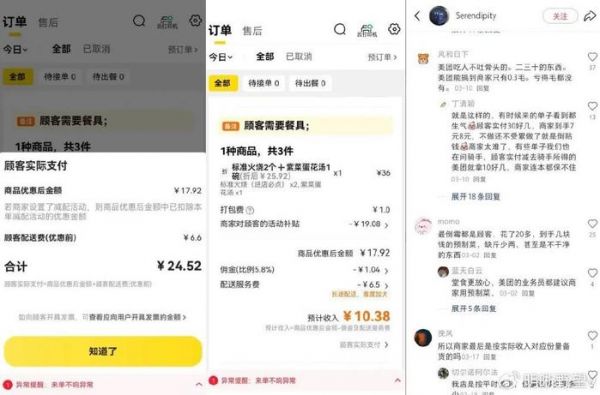 而外卖大战打响前,就有不少餐饮商家在社交平台抱怨“美团要把商家搞死了”,并且晒单:顾客付款20多元的订单,最终商家到手仅10元出头甚至更少。