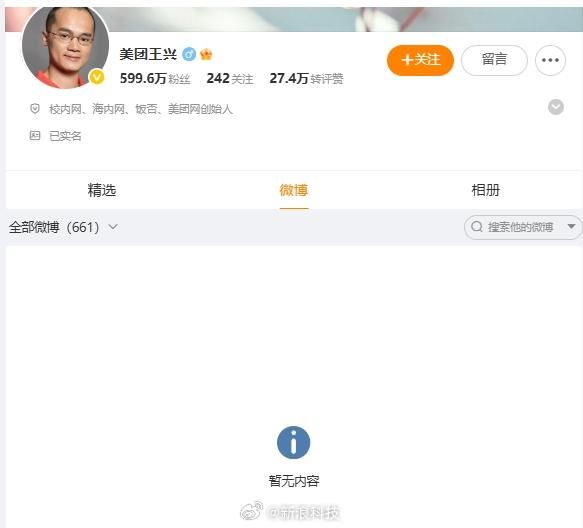 【#美团王兴微博内容不可见##美团CEO王兴微博内容不可见#】美团CEO@美团王兴 微博内容已不可见。