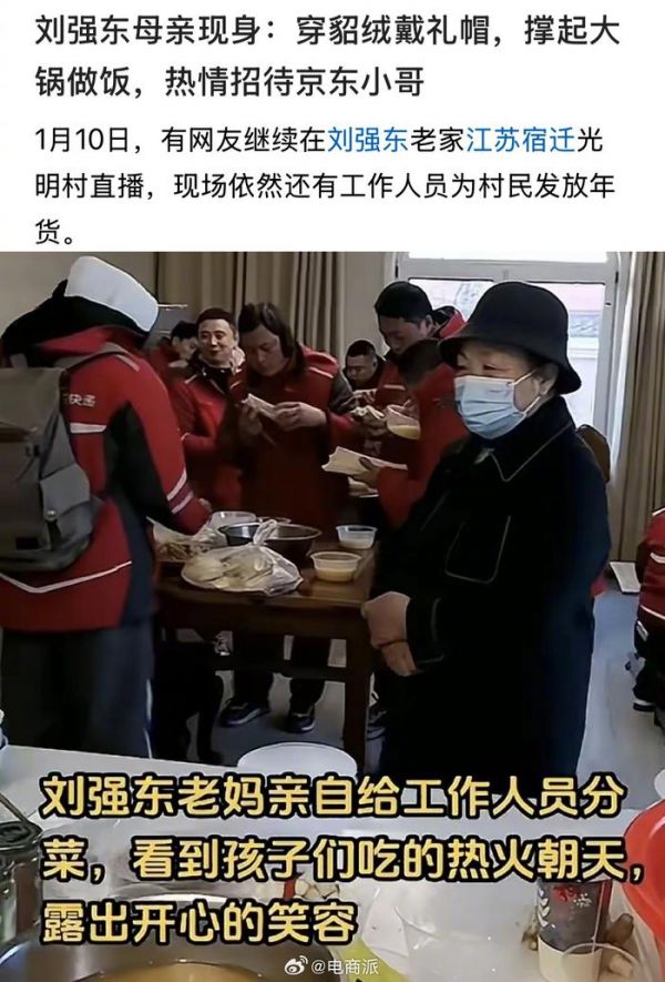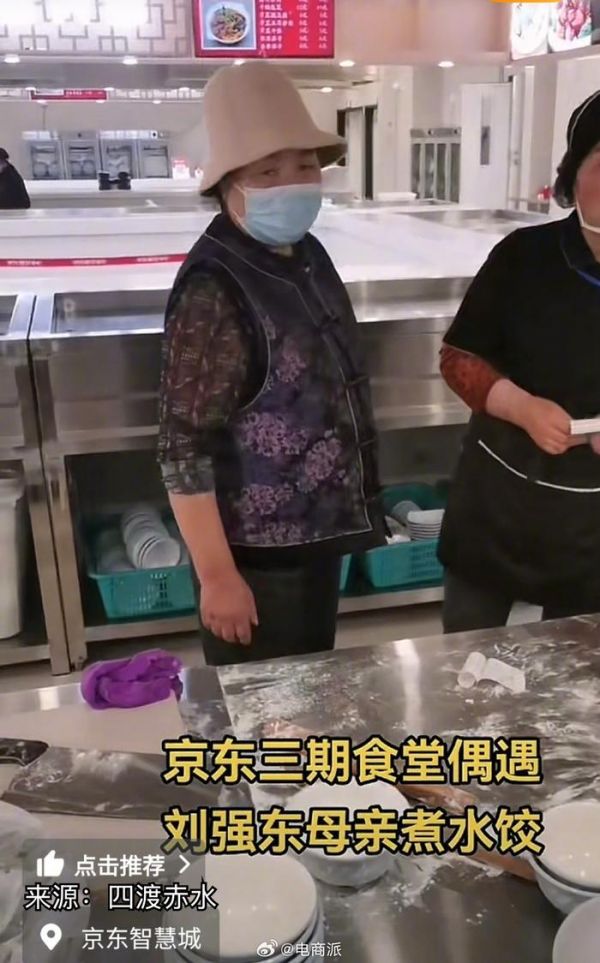 刘强东母亲现身京东食堂帮厨,曾为快递员下厨获赞