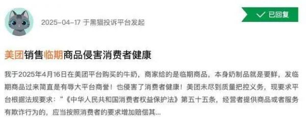 举个简单的例子,不少消费者在美团遭遇过临期产品背刺,涉及药品、牛奶等,关系到食品安全与健康风险。