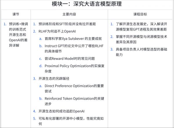 张睿文进一步解释,从课表来看,课程内容主要围绕着大模型的底层能力,“这等于是,你的应用场景只是做运营,但你居然要去学数学。这不是一招半式能练成的,工程师们也经历过很长时间的专业训练”。