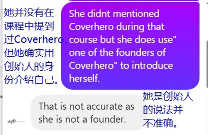 助教提供的讲师海报显示,Eva老师是知乎知学堂AI项目负责人、前海外保险管理App Coverhero创始人之一、悉尼科技大学硕士。在这些身份中,描述最为详细的“前海外保险管理App Coverhero创始人之一”较容易验证。记者通过邮件等方式联系上Coverhero的创始人及CEO Naby Mariyam,Naby回复称:“Eva在2017年曾在我们团队工作过,但她并不是创始人。我们从未授权她使用我们的品牌(来做宣传)。”