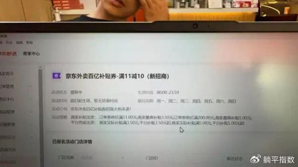 4月23日,多名商家反馈京东外卖再次调整“百亿补贴”政策,所有补贴活动均需要商家分摊50%成本。据悉,本次新规已是京东外卖上线“百亿补贴”12天来的第三次调整。