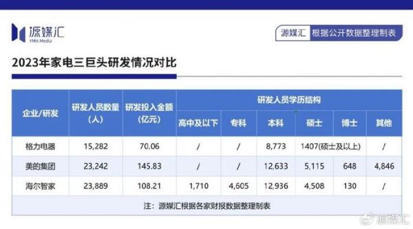 可见,不管是从研发人数、投入金额还是学历方面来看,同期格力均远逊于美的和海尔。