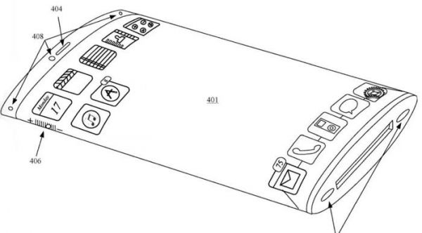 从这款新iPhone的专利图可以看到,整个屏幕呈现出弧形曲面形态。