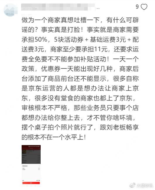 京东辟谣“平台不会设置强制分摊比例” 商家怒斥晒图实锤分摊情况