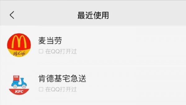 同时,在微信端小程序“最近使用”列表中,也会留下“在QQ打开过”的记录。