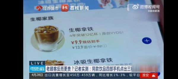 瑞幸4部手机同店点单现3种价格,客服否认杀熟