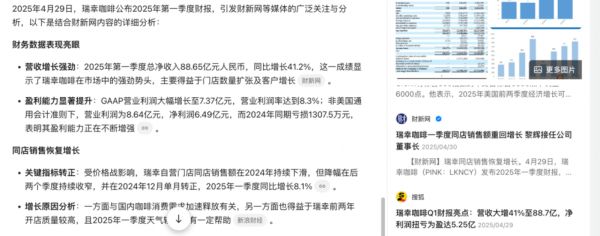 刚好4 月 29 日瑞幸发布了2025 年第一季的财报,当前对财报进行分析的媒体还不多,这是个测试 kimi 能不能胜任财报分析工具的好机会。
