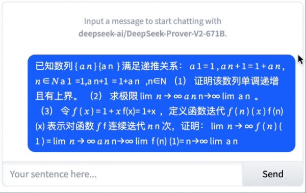 目前,Prover-V2系列已可通过Hugging Face平台免费下载,并支持Transformers接口部署。Novita AI是首批上线Prover-V2-671B推理服务的第三方提供商,我们也借此测试了一些问题。