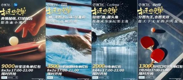 饿了么紧跟赛事节奏,接连上线“夺金免单”和“挺你免单”互动,只要中国队夺金,饿了么平台次日即发专属免单,还通过专项免单表示力挺中国游泳队、乒乓队健儿们。这些活动高度贴合用户观赛的高昂情绪,得到大量消费者参与和认可。