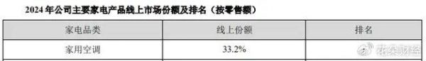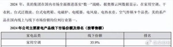 美的集团引用的数据显示,2024年,其家用空调的线下市场份额为35.9%,排名第一;家用空调的线上市场份额为33.2%,排名也是第一。