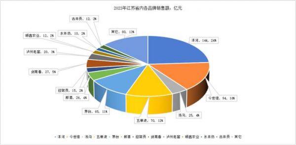 江苏市场有着较高的消费水平及消费频次造就充足的市场容量,成为其他品牌白酒省外突破的重点市场,五粮液、剑南春、古井贡、泸州老窖、郎酒等品牌纷纷在江苏聚焦投入资源,依托主导产品及系列酒等品牌抢占中高端、次高端价位段,整体流通规模出现上升趋势。