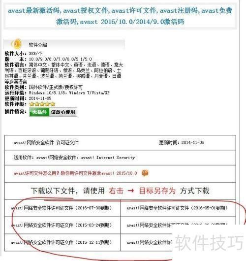 1、 打开页面后,找到所示的许可证文件,右键点击并选择目标另存为进行下载。请注意,这些许可证仅适用于当前版本的avast网络安全软件。如果是完整版杀毒软件,则需下载与之匹配的相应许可证文件。