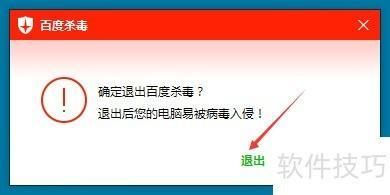 2、 点击后,百度杀毒会弹出退出提示对话框,所示,点击即可退出。