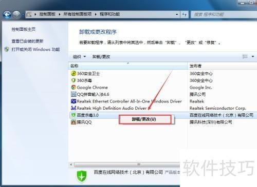 百度杀毒怎么卸载 删除任务栏百度杀毒方法
