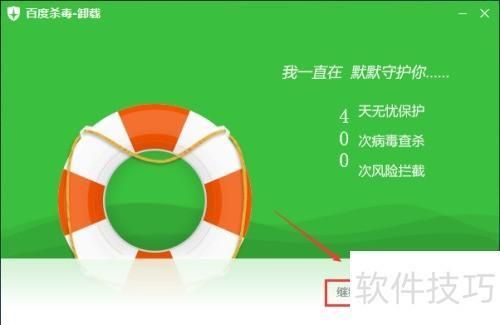 7、 随后,在百度杀毒卸载界面点击继续卸载,所示。