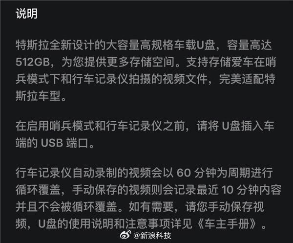 【#特斯拉发布专用U盘##特斯拉U盘512G售价599元#】特斯拉发布了一款专用U盘,容量为512GB,售价599元,专为车辆的哨兵模式和行车记录仪设计。这款U盘于5月3日在Tesla App和微信小程序上线。