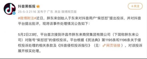同时,抖音还表示,如果“柴怼怼”在处置期后进一步发布涉嫌侵权内容,将升级处置。并称,如法院判决被投诉人发布内容属实且不涉嫌侵权,被投诉人可向平台申诉解除处罚。这就是说,抖音的处理都是动态的,保持了审慎的态度,试图表明自己不偏向某一方。