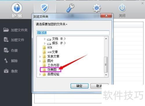 3、 接下来,选中需要加密的文件夹,例如要加密效果图这个文件夹。