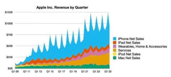 因此,蒂姆·库克也试图强调苹果的抗风险能力。他在电话会议上表示,回顾三月季度,并未观察到关税影响导致用户需求大幅提前的明显证据,渠道库存变化也不大,尽管为了预防确实建立了一部分库存。然而,相比这些积极表态,市场更关注库克关于关税影响的负面预测——“预计关税将在(财年)三季度造成成本增长9亿美元。”市场的担忧还集中在占总收入54%的iPhone营收同比下降10%,以及作为生态核心的服务业务增速放缓上。