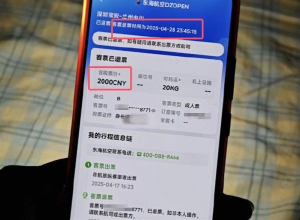 记者也将该博主遇到的问题向东海航空反映,工作人员回应称,尾号8771客票是已退票状态,而尾号0723的客票已使用。机票票价有涨有跌,如未经本人操作,已出票又被退票的话,只有原订票平台可以操作。至于为何出现这种情况,其无法查询。