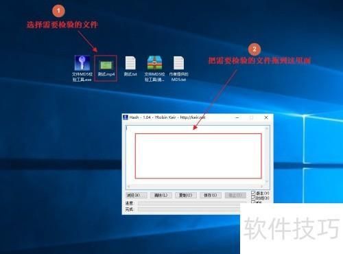 3、 首先选择要校验的文件,按住鼠标左键不松,将文件拖至MD5校验工具中,然后静候校验结束即可。