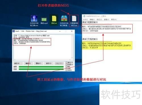 4、 打开作者提供的MD5码(通常只有作者提供时才需验证)。接着,将MD5检验工具显示的结果与作者提供的数据逐一比对。只有在两者完全一致的情况下,才能确认该文件就是作者原始提供的文件。否则,说明此文件可能已被修改或损坏。