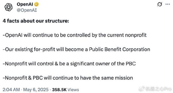 OpenAI宣布重大转型:调整公司架构,废除“利润上限”,转营利性公司为公益公司