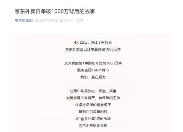 京东美团的激烈斗争,让不少网友平拍手叫好,在高额补贴力度下,京东外卖也迅速成长为了日单破1000万的平台。